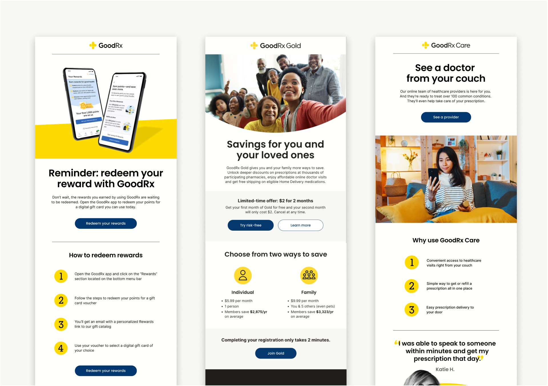 Over the last 4 years, I have had the opportunity to help elevate the GoodRx brand across a variety of platforms including CRM, Social, TV & Video, Out-of-Home, Print, Programmatic, and Experiential. Working for GoodRx has allowed me to work on a wide variety of creative projects and help bring this brand to life through all of the assets we put out into the world. Here are a few examples of the work we’ve been doing over the years.